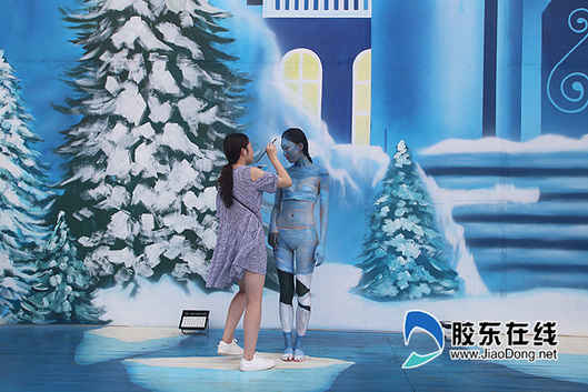 膠東在線8月4日訊(通訊員 曲玫樺) 人體彩繪以其強大的視覺沖擊力和特殊的美感吸引了眾多愛好者,風靡世界。8月3日,37°夢幻海水樂園邀請到了國際著名人體彩繪團隊,她們以數名性感女模為“畫布”把“中國最美海景水樂園”實景與人體彩繪藝術完美融合,創造性地沖破成規定律,將人體彩繪玩出了新花樣,并向游客展示了令人驚艷的絕美藝術作品。