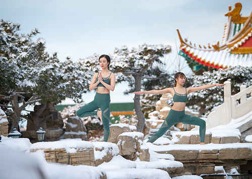 當天的溫度是-7℃,下午3點整,一場浪漫的雪中瑜伽準時上演,姑娘們不畏嚴寒,個個猶如下凡的仙女,在優美輕柔的樂曲伴隨下,輕盈的拉伸擰轉,在三仙山仙境般美景的映襯下禪修吐納,盡情舒展身體,用曼妙的瑜伽體位,將身心徹底地融合在大自然中,真正的達到天人合一的境界,讓生活中的煩惱和壓力,在清風中一掃而凈。