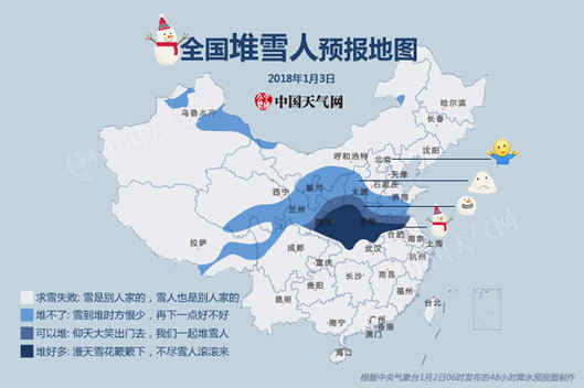 原標題:全國堆雪人預報地圖發布 你要不要堆一個?