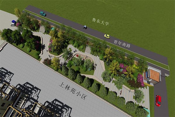 改造方案:增加涼亭、健身步道、休閑桌椅等;地面鋪裝采用白色卵石、深灰色花崗巖、淺灰色花崗巖;植物設(shè)計在保留修剪現(xiàn)有植被的基礎(chǔ)上,補植各色花灌木:碧桃、日本晚櫻、紫薇、木槿、黃金槐(金葉)、紅葉石楠球(常綠)、金葉女貞球(半常綠)等。