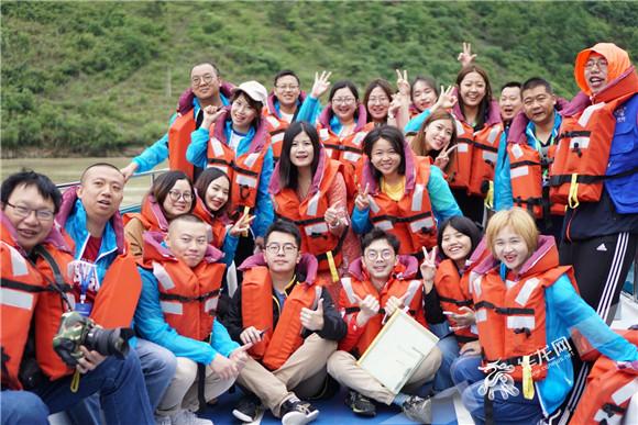 百家網媒酉陽行的記者們在烏江游船上開心合影見習記者冉桐攝