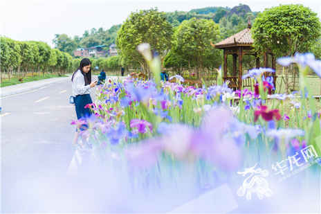 記者走進梁平雙桂田園桂香天地,只見絡繹不絕的游客行走在整潔寬闊的景區道路上,不時停下腳步自拍。初具雛形的紫薇園引起游客張阿姨的興趣,她擺出了好幾個造型,要老伴給她拍照留影。桂池映月旁的鳶尾花開得正好,廊橋、棧道與水相連,引得愛花的女游客們驚嘆連連,桂香天地煥發出新的光彩。