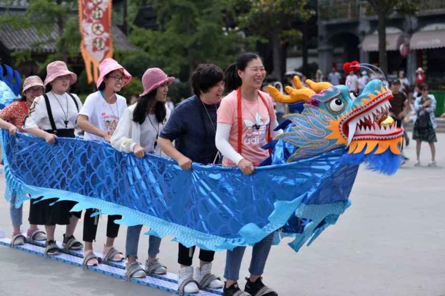 在棗莊臺兒莊古城景區,一場以“旱地賽龍舟妙趣迎端午”為題的旱地龍舟大賽熱鬧上演。比賽中,參加活動的游客整齊劃一,相互配合,以最快速度抵達終點,手里的粽子投入桶內,別樣有趣的比賽讓游客深切感受到了端午文化的源遠流長,博大精深。游客吳婷說。