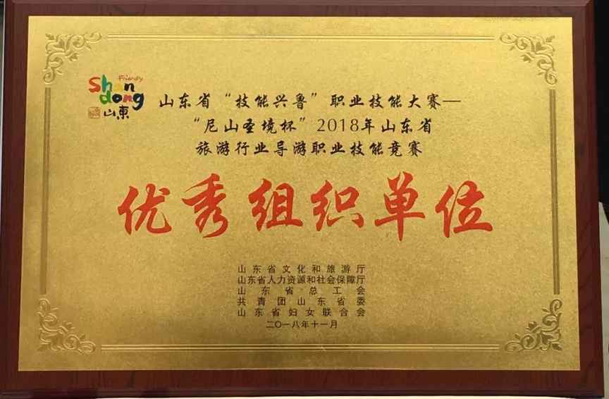 大賽分為導游服務技能競賽和研學旅行方案設計競賽兩個賽項,各設一等獎1名、二等獎2名、三等獎3名。袁飛、宮玉皎分別斬獲服務技能競賽賽項二、三等獎;袁飛榮獲“山東省財貿金融系統五一勞動獎章”,同時,袁飛、宮玉皎、呂春莉獲得“山東省旅游行業技術能手”稱號。煙臺市旅游發展委員會榮獲“優秀組織單位”獎。
