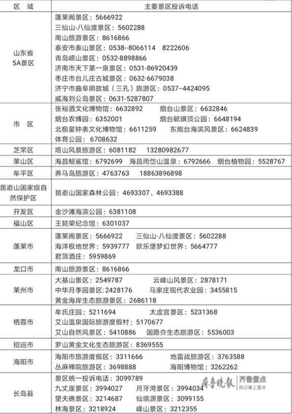 主要景區(qū)點(diǎn)旅游投訴電話一覽表