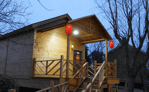 溪客度假屋位于孫子文化園內一片生態園林中,外形酷似荷花,木屋上下兩層,上可觀景,下可會客。夜里燈光外透,“荷花”分外秀美。冬季在大雪的襯托下,更有一種浪漫溫馨之感。欣賞完花燈后,住下來慢慢感受年味兒。