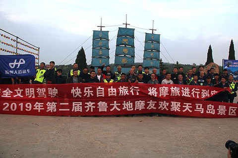 2019年第二屆齊魯摩友車友會在天馬島風景區盛大開啟來自山東多個地區及其他省份的摩友歡聚一堂,在天馬島營造了一場聲勢浩大的機車騎行。