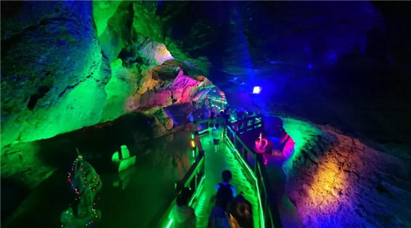 洞內不但有大量的鐘乳、奇石等奇特景觀,而且還有大量螢火蟲在陰濕的巖洞中寄居生存,布滿在洞頂猶如晴朗夜空中閃爍的星星,星星點點,成千上萬,形成了一種奇妙的景觀。游人進入暗黑的溶洞乘上一葉由繩索牽引的輕舟,破水前行,前邊豁然開朗,滿天繁星閃爍,熠熠生輝,猶如進入一個童話世界,使人浮想聯翩,流連忘返!