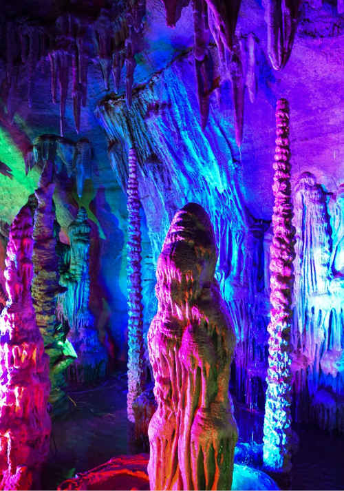 洞內有一河、九泉、九宮、十二瀑、十二峽等景觀100余處,峽谷內鐘乳石林立,五光十色,晶瑩剔透,洞內石筍、石柱、鵝管等遍布,各具特色,景象萬千。各處景致形態逼真,奇石、怪峰、幽谷、深洞惟妙惟肖,水泉、瀑布、溪流絢麗多彩,讓人嘆為觀止。
