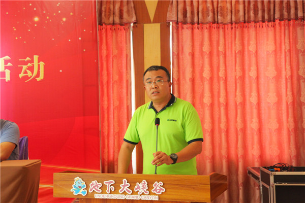 膠東在線7月3日訊(通訊員 尹曉紅) 近年來,山東大力促進文旅產業的發展,并不斷取得佳績。7月2日,螢火蟲水洞·地下大峽谷旅游區創建國家5A級旅游景區沖刺活動啟動儀式在山東地下大峽谷舉行。沂蒙風情旅游景區管理中心主任李志剛,沂水縣文化旅游發展中心副主任宋貴寶,沂蒙風情旅游景區管理中心副主任黃斌,院東頭鎮安監辦副主任萬洪金,山東龍岡旅游集團總裁曹恒超,山東龍岡旅游集團顧問陳榮光,山東龍岡旅游集團副總裁孔杰以及旅游區領導班子成員和員工代表150余人參加會議。