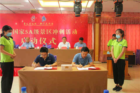 會上,舉行5A創建目標責任書簽訂儀式。集團總裁曹恒超分別與創建國家5A級景區管理小組組長張森、創建國家5A級景區宣傳營銷小組組長申有功、創建國家5A級景區規劃提升小組組長譚長志簽訂目標責任書。創建國家5A級景區管理小組組長張森分別與景區相關負責人簽訂目標責任書。同時,員工代表作表態發言。