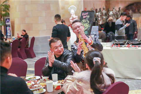 舞蹈《盛世華章》當晚,歐樂堡國際酒店在夜幕的映襯下熠熠生輝,成為點亮仙境海岸的一顆耀眼明珠。酒店白金五星廚師團隊精心準備了全球美食匯自助大餐,各式海鮮、傳統中式和歐式美食,現烤火雞、蜜汁火腿等菜品款款誘人,在暢飲紅酒的同時開啟新年新篇章。在品嘗完美食盛宴后,賓客們移步至國際酒店大堂正式開啟狂歡之夜,央視選秀冠軍崔立東、劉欣麗傾情獻唱,魔術表演奇幻非凡、搖滾樂隊燃情助力、勁爆DJ嗨翻全場。在視覺、聽覺、味覺完美浸入感官的震撼和沖擊下,一輪又一輪的抽獎將幸運帶給賓客,也將這份幸運傳遞到2021年。新年零點全場共同倒計時,上萬只氣球也伴隨著新年的鐘聲從酒店中庭緩緩落下,猶如顆顆繁星落入凡塵,滿載著衷心的祝福,璀璨煙花點亮仙境夜空,迎接新一年的到來。