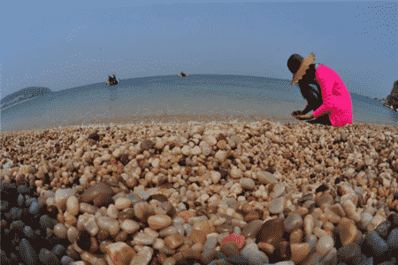 月牙灣沿著彩虹跑道,會走到另一個景區(qū)月牙灣,這是一處天然的海水浴場,這里的海水,藍而澄澈,它的海灘是由各色珠璣卵石堆砌而成,宛如珍珠瑪瑙鋪就,潔白的如美玉,晶瑩的賽琥。夕陽西下,海面波光粼粼,人的身影被拉得長長的,一切景物都被夕陽的余暉所籠罩著、暈染著、仿佛都披上了一層美麗的紗籠。