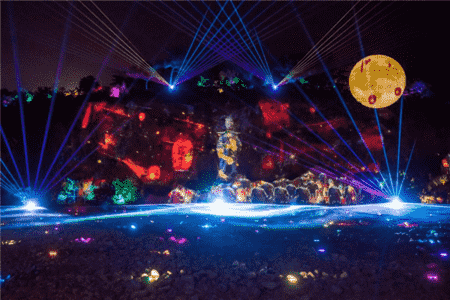 “夢尋仙山”位于長島林海景區內,充分利用長島得天獨厚的地理特點打造。通過綜合多媒介互動光影技術,將長島林海景區打造成最具仙氣、最具夢幻、最是唯美的島上秘境。游客到此夜游,可獲得沉浸式互動體驗。整場光影演出以山、海、崖等自然景觀作為背景和載體,彰顯地域和文化的獨特性。給人以身臨其境之感。