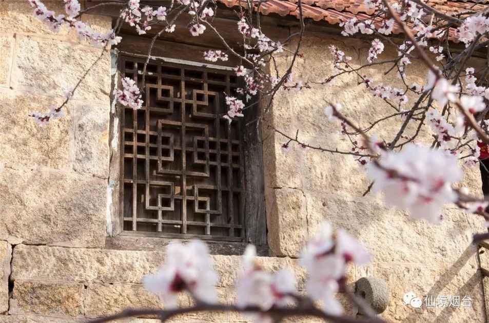 古色古香的窗戶外,杏花恣意開放。 攝影:王聯興