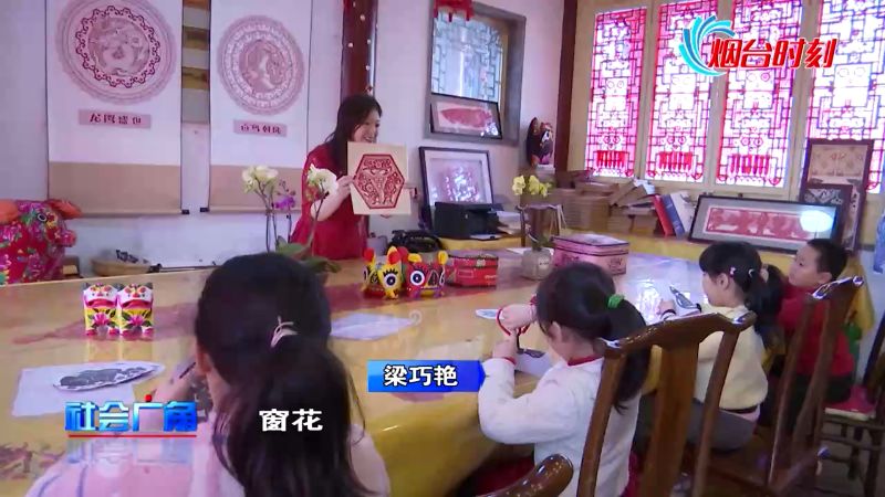 一走進非遺項目煙臺剪紙代表性傳承人梁巧艷的工作室,梁巧艷正在教孩子們動手剪窗花。