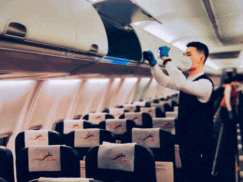 幸福航空安全員正在進(jìn)行客艙安全檢查