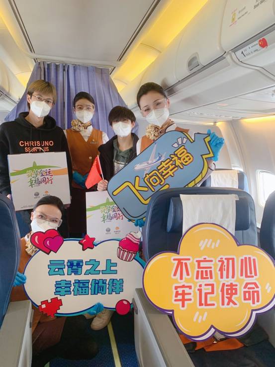 西安返鄉(xiāng)學(xué)子與幸福航空客艙乘務(wù)員合影