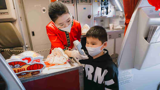 首都航空在做好各項防疫的基礎(chǔ)上,在JD5331海口出港的航班中舉辦機上活動,結(jié)合了傳統(tǒng)習(xí)俗觀燈、猜燈謎等元素開展。