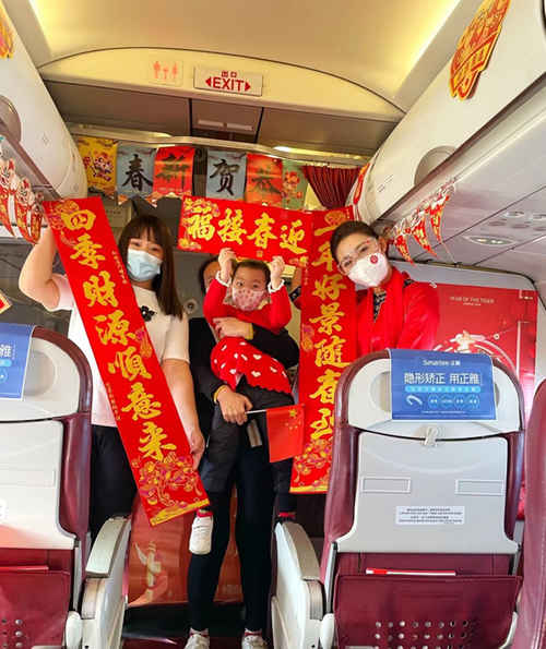 在客艙里,首都航空舉辦了春節(jié)“溫暖的中國紅,溫暖了一整個寒冬”系列活動,與旅客一起在除夕夜“辭舊迎新,迎祥納福,貼福字”,在北京出港的航班上開展“喜迎新春,助力冬奧”機上活動、在麗江出港的航班上開展“繼往開來新局面,與時俱進興發(fā)展”機上活動、在元宵節(jié)“萬家燈火,總有一盞為你而亮”特色航班活動,營造了節(jié)日氣氛,用“有溫度”的真情服務(wù),提升了春運期間旅客的乘機體驗。