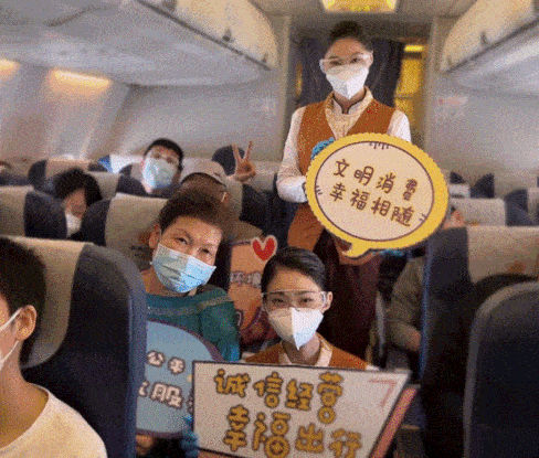 “女士們、先生們,歡迎您選乘幸福航空航班,很榮幸與您在幸福航空的班機上相遇。今天是‘3·15 ’國際消費者權益日,我們將在今天的航班上開展主題為‘守護安全順暢出行’的主題客艙活動。我們將與您分享如何在消費過程中維護自己的合法權益,隨后將開展有獎競答互動,希望各位旅客朋友踴躍參與。祝各位旅途愉快。”飛機平飛后客艙活動拉開了序幕。乘務長為當天航班的旅客介紹了消費者權益日的由來,向旅客普及購票出行、客艙服務、客艙安全、行李運輸、旅客的權利和義務等航空旅行知識及相關法律法規,并邀請航班上的旅客進行問答互動。“本次活動內容豐富且有趣。在互動過程中,我們更直接地了解了在購票和乘坐航班過程中享有的合法權益,也學習到了合法權益被侵害時的正確維權途徑。”客艙內積極參與互動的劉先生說道。