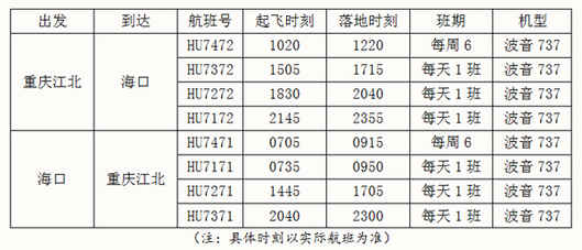 夏秋換季,海南航空重慶地區(qū)執(zhí)飛航線(xiàn)多達(dá)16條 恢復(fù)重慶-珠海、增頻重慶-海口航班