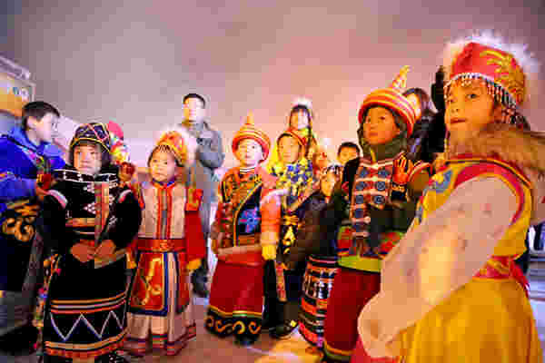 穿上民族服裝的小朋友們(圖由西嶺雪山景區(qū)提供)