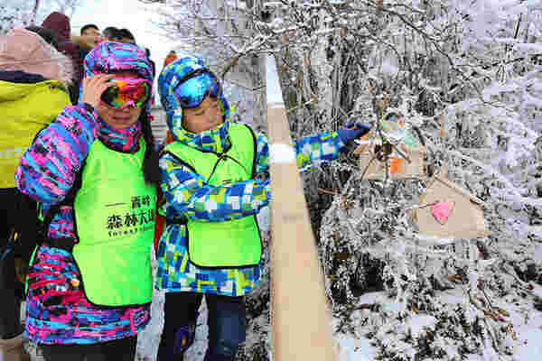 在海拔3200余米的日月坪,云海、雪原、森林共同描繪出成都之巔的壯美景象。伴隨著氣溫的下降,空氣中飽和的水汽遇冷,凝結(jié)成霜花,掛在西嶺雪山浩浩林海中,隨著灑下的陽(yáng)光,閃耀出晶瑩的色彩。沿棧道前行,走入森林還有機(jī)會(huì)遇見(jiàn)松鼠等野生動(dòng)物。記者在現(xiàn)場(chǎng)看到,孩子和家長(zhǎng)們?cè)诶蠋煹膸ьI(lǐng)下,在森林中用環(huán)保材料共同為小松鼠們搭建起了溫暖舒適的小窩,并用自己的創(chuàng)意裝點(diǎn)松鼠的家。孩子們?cè)趧?dòng)手制作的過(guò)程中,了解了松鼠的生活習(xí)性,學(xué)會(huì)了如何科學(xué)的同自然相處,也在父母的陪伴下習(xí)得了動(dòng)手解決問(wèn)題的能力。
