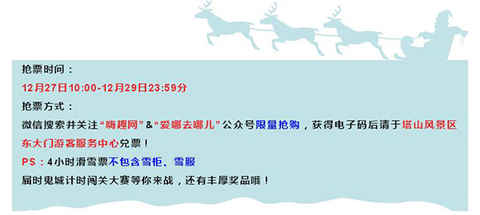 讓你任性玩轉塔山!2017年12月30日-2018年1月14日4小時免費滑雪+鬼城迷宮+射擊館門票全免&免費提供3發子彈