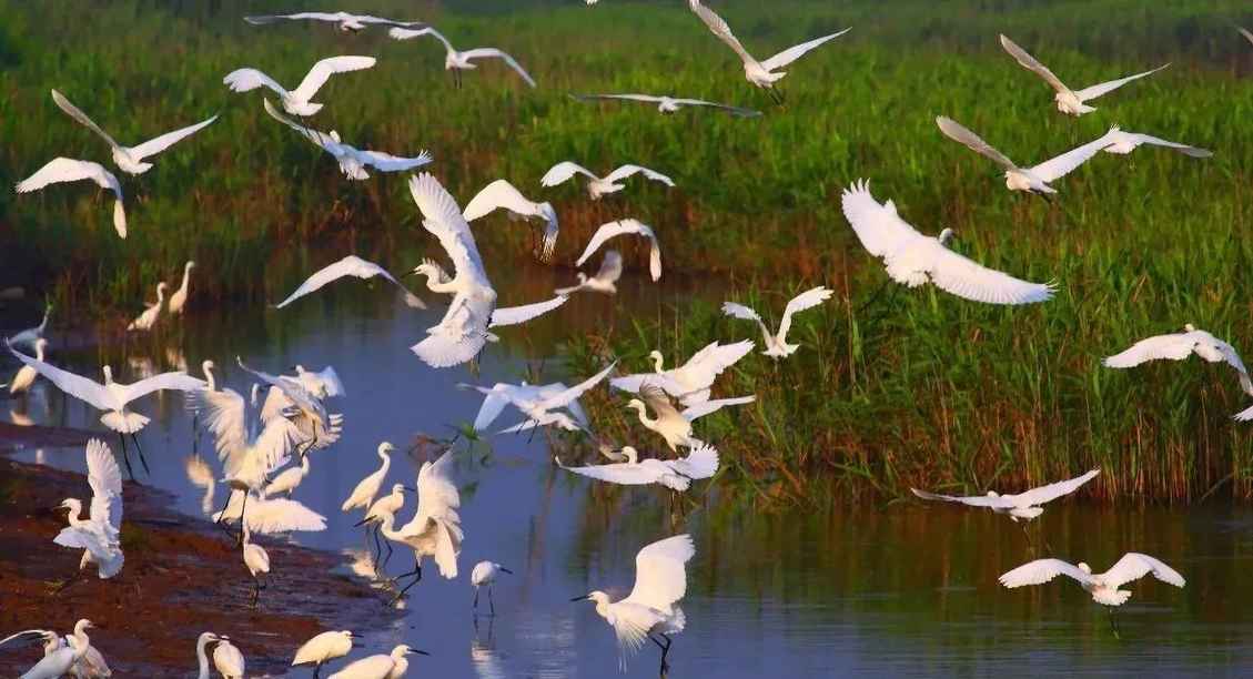 到目前,小孩兒口國家城市濕地公園已有天鵝、野鴨、海鷗、白鷺等野生水禽和候鳥在此棲息,形成了“水中有林趣,群鳥戀天堂”的美妙景觀,是一處人與自然和諧共處的桃源勝境。