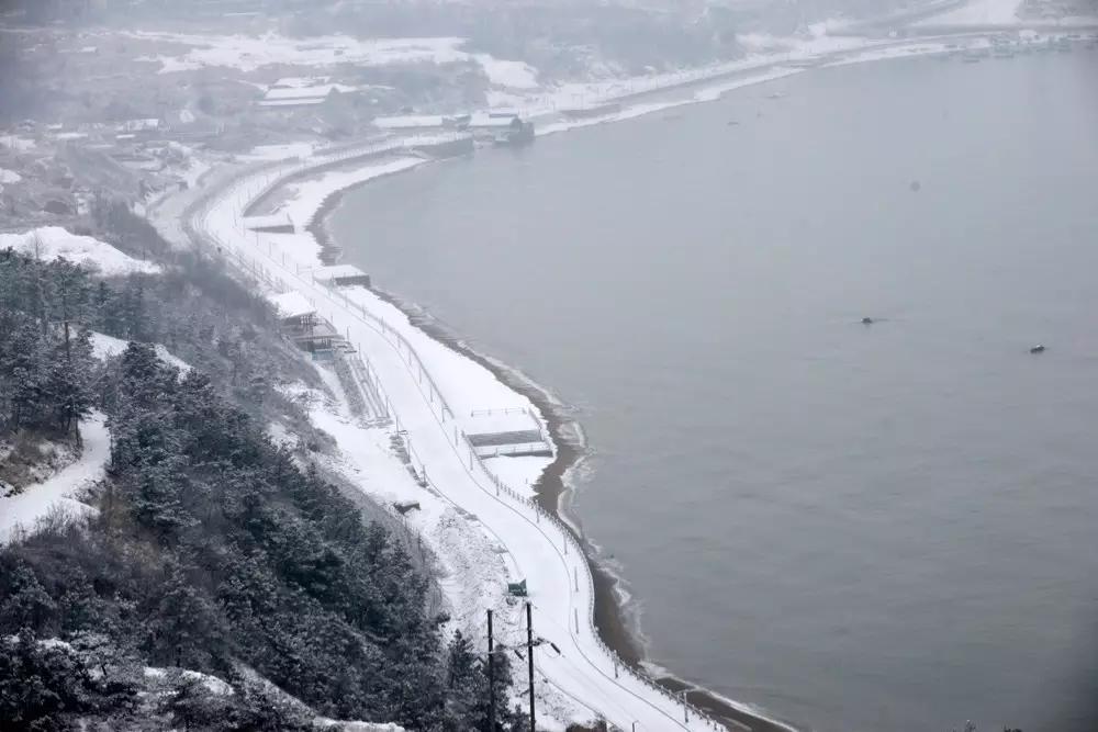 下雪的日子里,紛紛灑灑的雪花天地間飄灑,給長島的海增添了一份純凈和柔美。