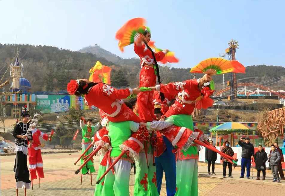 聘請國家非物質文化遺產——遼寧海城高蹺秧歌隊來景區舉行為期10多天的巡回演出,其是城鄉廣大群眾最為喜聞樂見的一種傳統民間藝術形式,具有深厚的群眾基礎。