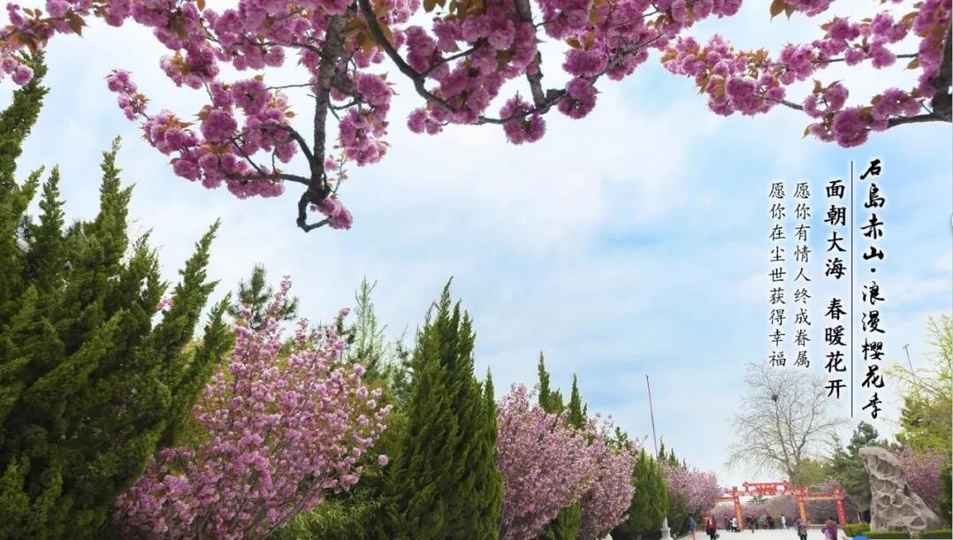 臨近海濱的緣由,海納百川,赤山之春總是姍姍來遲。待到山花爛漫時,櫻花竟春笑。此時萬物盎然,春風拂面,數萬株櫻花即將爭相綻放,數十種花卉樹木把赤山粉飾的漫山遍野萬紫千紅。