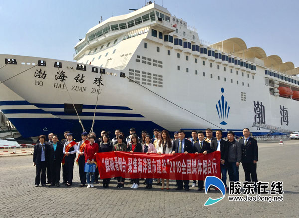 4月18日,“媒眼看煙臺·聚焦海洋強市建設”2018全國媒體煙臺行采訪小組,走進渤海輪渡,登上“渤海鉆珠”號,感受煙臺海運的大發展。