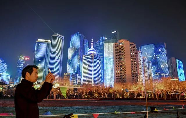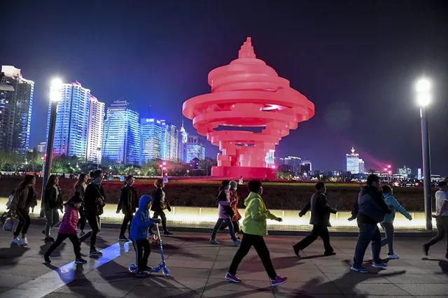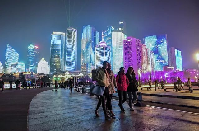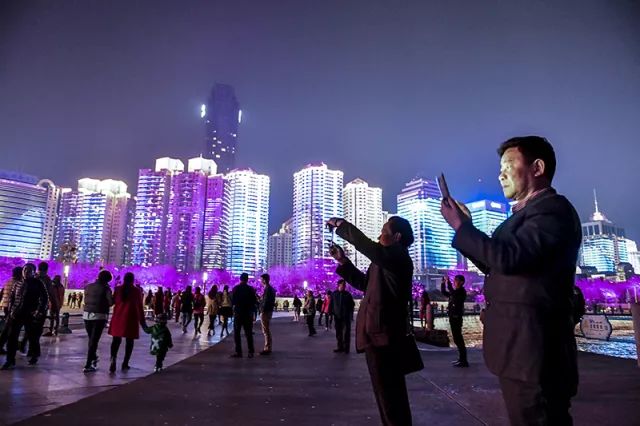 原標題:青島沿海夜景有變化 夢幻海洋藍美出天際(圖)