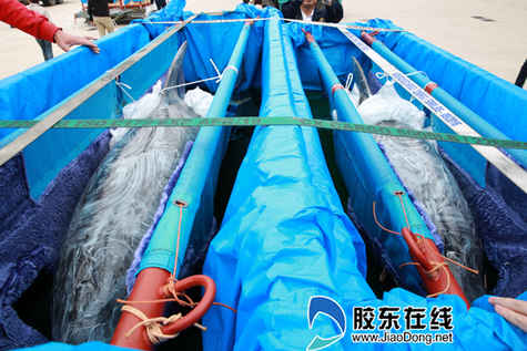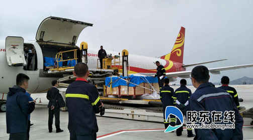 膠東在線5月11日訊(通訊員 隋新) 5月11日上午11:00,煙臺蓬萊國際機場迎來了幾位特殊的乘客,七頭海豚乘坐專機從日本飛抵蓬萊,將落戶蓬萊海洋極地世界。