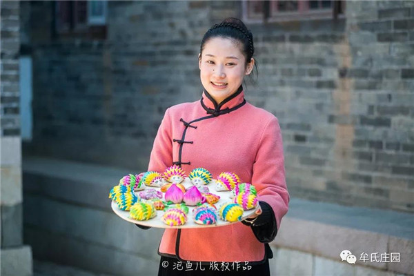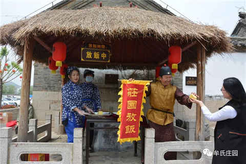 逛了這么久,累了吧?肚子也餓了吧?傭人在碾磨坊已磨好面,自家面粉現蒸的餑餑、發糕。免費吃喲,快到放飯亭領取吧!