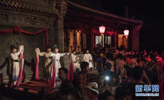 7月20日,游人在互動中觀賞大型情境體驗劇《又見平遙》。