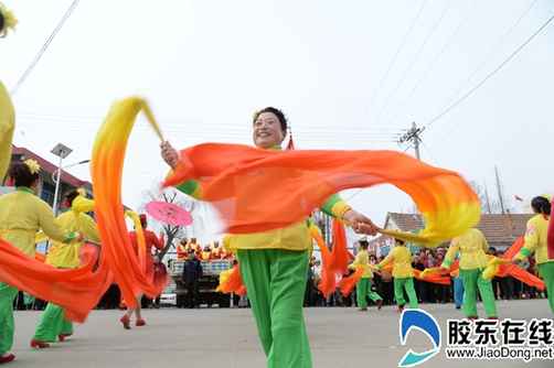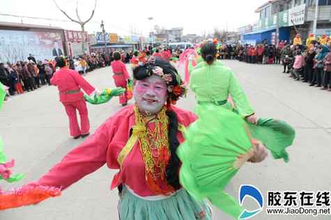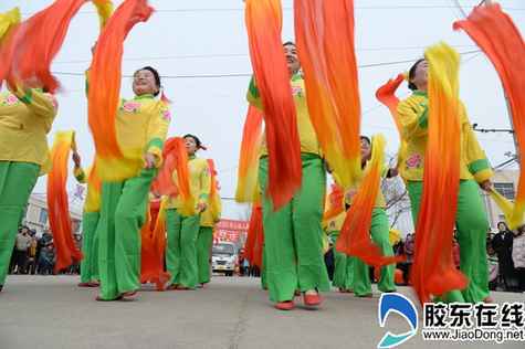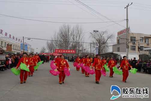 膠東在線2月15日訊(實(shí)習(xí)記者 滕文珍) 為展示招遠(yuǎn)夏甸鎮(zhèn)老百姓在新的一年里煥然一新、風(fēng)清氣正的精神風(fēng)貌,豐富人民群眾文化生活,推動(dòng)全鎮(zhèn)的文化事業(yè)發(fā)展。2月14日(正月初十)伴著新春的腳步,聽(tīng)著歡快的鑼鼓,由夏甸鎮(zhèn)黨委、政府舉辦的主題為“我的夏甸我的家,高高興興鬧新春”秧歌進(jìn)鎮(zhèn)活動(dòng),在夏甸新村鎮(zhèn)政府駐地舉行。來(lái)自青龍夼、新村北、新村南、勾下店、銀山后、嵐子?xùn)|、后路家等14個(gè)村的秧歌表演隊(duì)500余人在這里扭起新春大秧歌,為觀眾獻(xiàn)上了一場(chǎng)豐盛的民俗文化大餐。