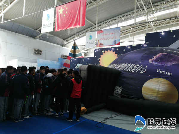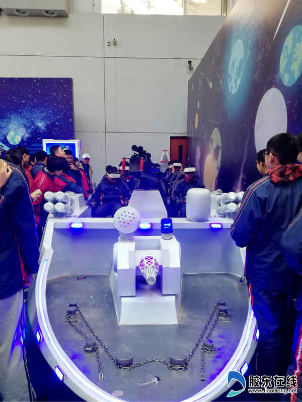 活動一開始,便迎來了煙臺二中的同學,他們排著隊來體驗航天科技帶給他們的快樂、興趣和向往。