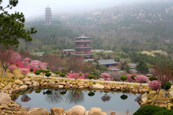 在榮成赤山景區赤山禪院前面的山腰處,有一座“百花園”,走進其中,一步一景。