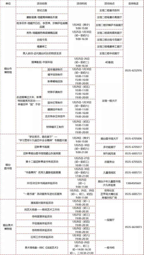 附:2020年春節(jié)期間煙臺各展館精彩活動