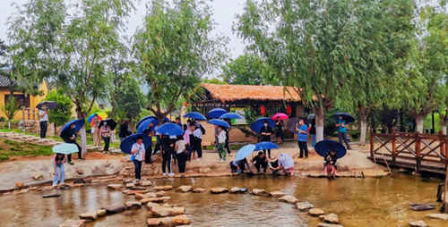 在淘金河邊,采風團人員紛紛挽起衣袖,拿上木制淘盒工具,蹲在河邊,按照淘金師傅的指導一點一點地將沙土分離出來。雖然是雨中游小鎮,大家依然興致很高。采風團成員同程公司的陳芳說,“煙臺的黃金文化之旅特色很鮮明,體驗內容也很豐富,適合研學、購物等不同客群,很有吸引力。”據景區工作人員介紹,景區每月都會定期向淘金河中投放黃金沙供游客淘金,無論淘到多少,顧客全能帶走,實現“黃金夢”。