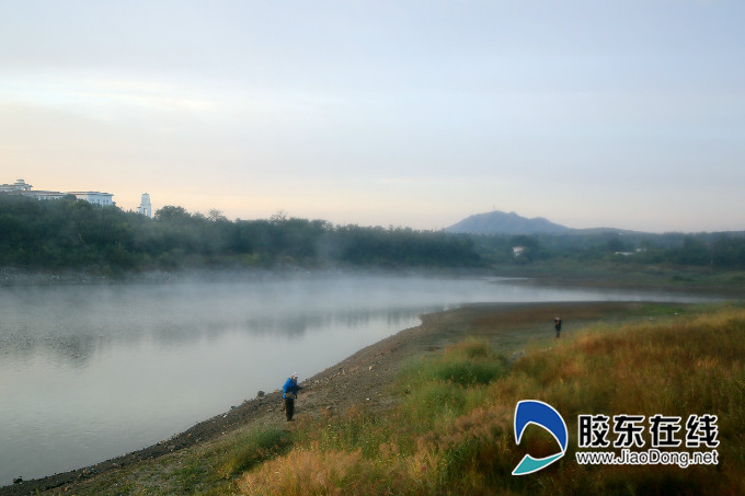 霧起鳳凰湖,恍然如仙境鳳凰湖本名戰山水庫,位于蓬萊城東南十余公里,是蓬萊城市的水源地之一,因從空中俯瞰,整個庫區形似一只飛舞的鳳凰而得名,舉辦過多次國際、國內大型會展活動的君頂酒莊就坐落在湖畔高地上。進入寒露節氣以來,晝夜溫差較大,白天最高22攝氏度左右,夜間則降至10攝氏度以下,而水的比熱較大,降溫、升溫都較為緩慢,故在日出前后,相對溫度較高的庫存水蒸發升騰,遇溫度相差10幾攝氏度的冷空氣,就直接霧化并隨微風輕輕飄動,周圍的山丘、樹林、岸坡仿佛在薄霧中飄動游移,隨著日出不段變換色彩,加上水波粼粼、野草簌簌、秋蟲啾啾、水鳥聲聲,給人一種心曠神怡、如夢似幻的感覺。