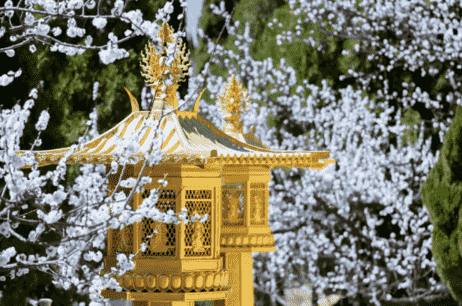 柳絲依依,掩映亭臺(tái)樓閣,勾織了一幅別樣美景,仿佛夢(mèng)里江南。