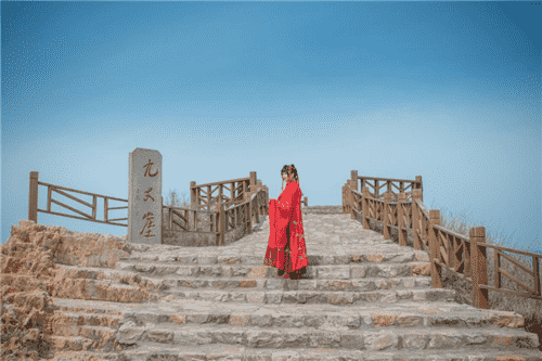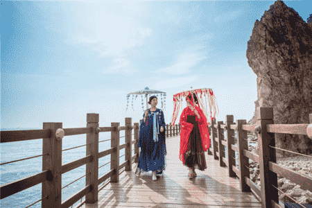 第二站來到了九丈崖,登在觀景臺上,感受漢服與崖壁礁石融為一體不同的美。
