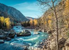 - 可可托海-布爾津(車程約5小時)【早中晚餐】住布爾津早餐后,乘車前往國家5A景區‘山東人遠方的家’【可可托海】,依次途徑有水鄉澤國之稱的可可蘇里;素有“中國的第二寒極”之稱的伊雷木湖;最后抵達【額爾齊斯河大峽谷景區】(含區間車,游覽約3小時),是以大型變質花崗巖地質地貌及峽谷自然風光為特色,有飛來峰、白樺洲、富龜迎客、卡拉卓勒瀑布等景點,還可觀賞到阿勒泰山脈標志性景點--神鐘山,有幸可以在額爾齊斯河畔撿到額河奇石。游覽結束后乘車赴布爾津,前往參觀【五彩灘】(參觀1小時),有天下第一灘之美譽,是新疆著名雅丹地貌之一。五彩灘的傍晚景色尤為壯觀,天上是潔白的云,地上是五彩的岸,中間是迷人的額爾齊斯河,遙相呼應,絕美畫卷…。后返回布爾津,可自行悠閑于布爾津小城內逛夜市,以賣烤冷水魚為主,生意紅火,南來北往的游客都來這兒宵夜,大胡子烤魚鮮嫩味美,體會一下布爾津燒烤。晚宿布爾津。