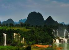 - 南寧-德天(250公里,約4.5小時)-碩龍早上于指定集合地點乘車往山水神秀盡集于此地,形成了數百里的天然山水畫廊的廣西德天跨國瀑布,游覽世界第二大跨國瀑布、亞洲第一大跨國瀑布、中國最美的瀑布—德天跨國瀑布(游覽約2小時),國家特級景點德天瀑布氣勢磅礴,銀瀑瀉,三級跌落, 為壯觀,其魄力、其氣勢、其風采,震魂攝魄,搖動心旌,游中越邊境53號界碑,
