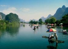 - 早餐后,乘車(chē)赴漓江碼頭(約50分鐘車(chē)程),乘豪華國(guó)際三星級(jí)游船游覽【百里畫(huà)廊---漓江風(fēng)光】(全程游覽約4小時(shí),中餐船上提供價(jià)值30元航空餐,感受唐代詩(shī)人韓俞筆下:“江做青羅帶,山如碧玉簪”的漓江風(fēng)光,漓江像蜿蜒的玉帶,纏繞在蒼翠的奇峰中,造化為世界上規(guī)模最大、景色最為優(yōu)美的巖溶景區(qū)。在美國(guó)CNN評(píng)選的《全球最美的十五條河流》中,漓江是我國(guó)唯一一條入選的河流。沿途欣賞楊堤煙雨,浪石仙境,九馬畫(huà)山、黃布倒影,興坪佳境……。(碼頭---停車(chē)場(chǎng)步行約30分鐘),游覽“不是漓江,勝是漓江”的田園詩(shī)意絕唱【遇龍河竹筏漂流】(多人漂,約40分鐘)溪水潺潺,竹影婆娑,青峰倒影,泛舟遇龍河上體味“舟行碧波上,人在畫(huà)中游”的美妙情結(jié);乘車(chē)赴銀子巖約40分鐘,游覽【銀子巖風(fēng)景區(qū)】(約60分鐘),其被國(guó)際地質(zhì)學(xué)家譽(yù)為”世界巖溶藝術(shù)寶庫(kù)”,以雄奇幽美獨(dú)領(lǐng)風(fēng)騷,是桂林旅游圈新出現(xiàn)的一顆璀璨的明珠。返陽(yáng)朔,享用晚餐【品嘗陽(yáng)朔啤酒魚(yú)】。晚餐后,自由逛【陽(yáng)朔西街】,在仿古的建筑群里感受獨(dú)特的歐陸風(fēng)情(司導(dǎo)不陪客人)。自費(fèi)小交通:陽(yáng)朔碼頭電瓶車(chē)15元/人(自愿選擇)十里畫(huà)廊景區(qū)交通費(fèi)60元/人(必選項(xiàng)目)