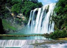 - 第八天早上貴陽接火車,(早餐請客人自理,提前自行安排好)乘車2小時左右前往瀑布之鄉——鎮寧縣,游“風刀水劍刻就的萬頃盆景、根筆藤墨繪就的千古絕畫”——天星橋水上石林景區(1小時左右),領略黃果樹景區的別樣神韻,感嘆大自然造物的神奇;之后觀光陡坡塘瀑布(半小時),它是黃果樹瀑布群中瀑面最寬的瀑布;中餐后暢游亞洲最大的瀑布——黃果樹瀑布(門票自費300元/人,含觀光車,不含上下扶梯單程30雙程50元/人,游覽2小時左右),觀盆景園、走水簾洞,從上下、左右、前后全方位觀賞瀑布,世間絕無僅有; 下午前往興義(車程3.5小時左右),途觀北盤江大峽谷、亞洲最高的北盤江大橋(高486米)、國內最大的懸索橋——壩陵河大橋(全長2237米,主跨1088米,距河面垂直高度370米,是目前還是同類橋梁中的中國第一、亞洲第二),晚餐后入住酒店休息。中晚餐興義